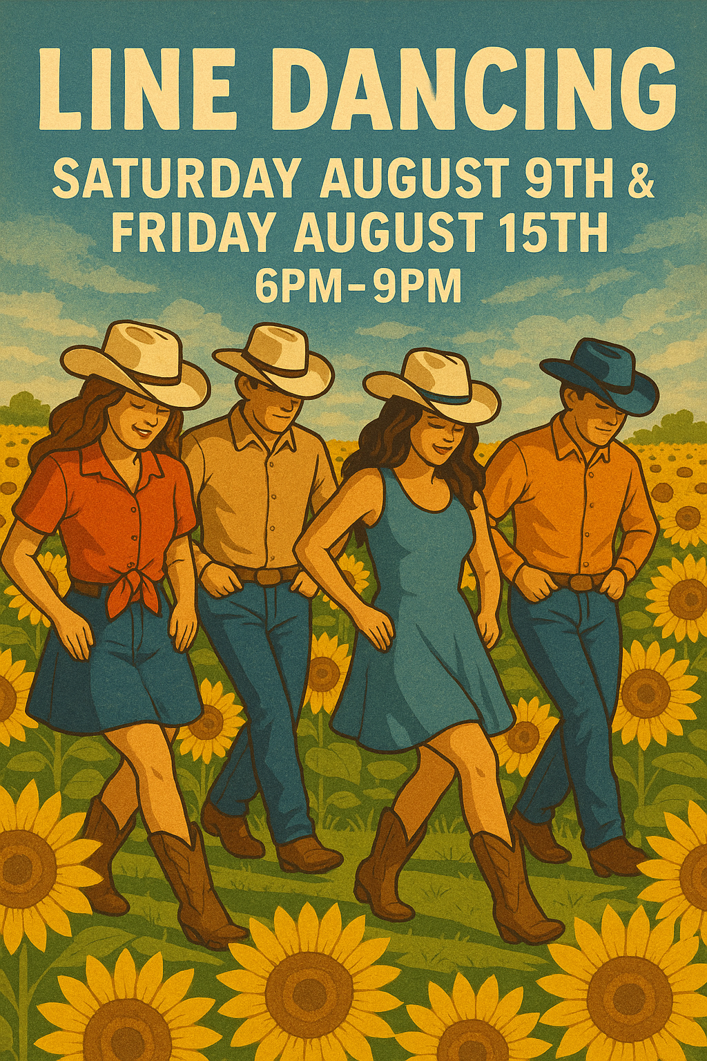 Grab your boots and get ready to dance under the golden glow of summer! Join us at The Sunflower Farm for an unforgettable evening of line dancing in the sunflower field surrounded by blooms, good vibes, and great tunes. Dance among thousands of sunflowers at sunset! Live DJ spinning country hits and fun dance tracks. No experience needed just bring your energy and a smile!