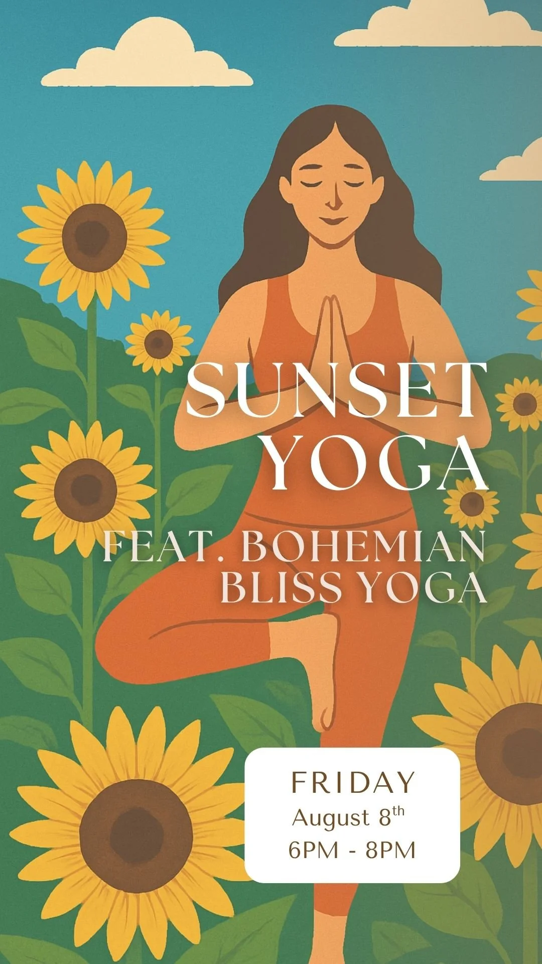 This year, celebrate Bohemian Bliss Yoga's 8th anniversary in the sunflower fields!