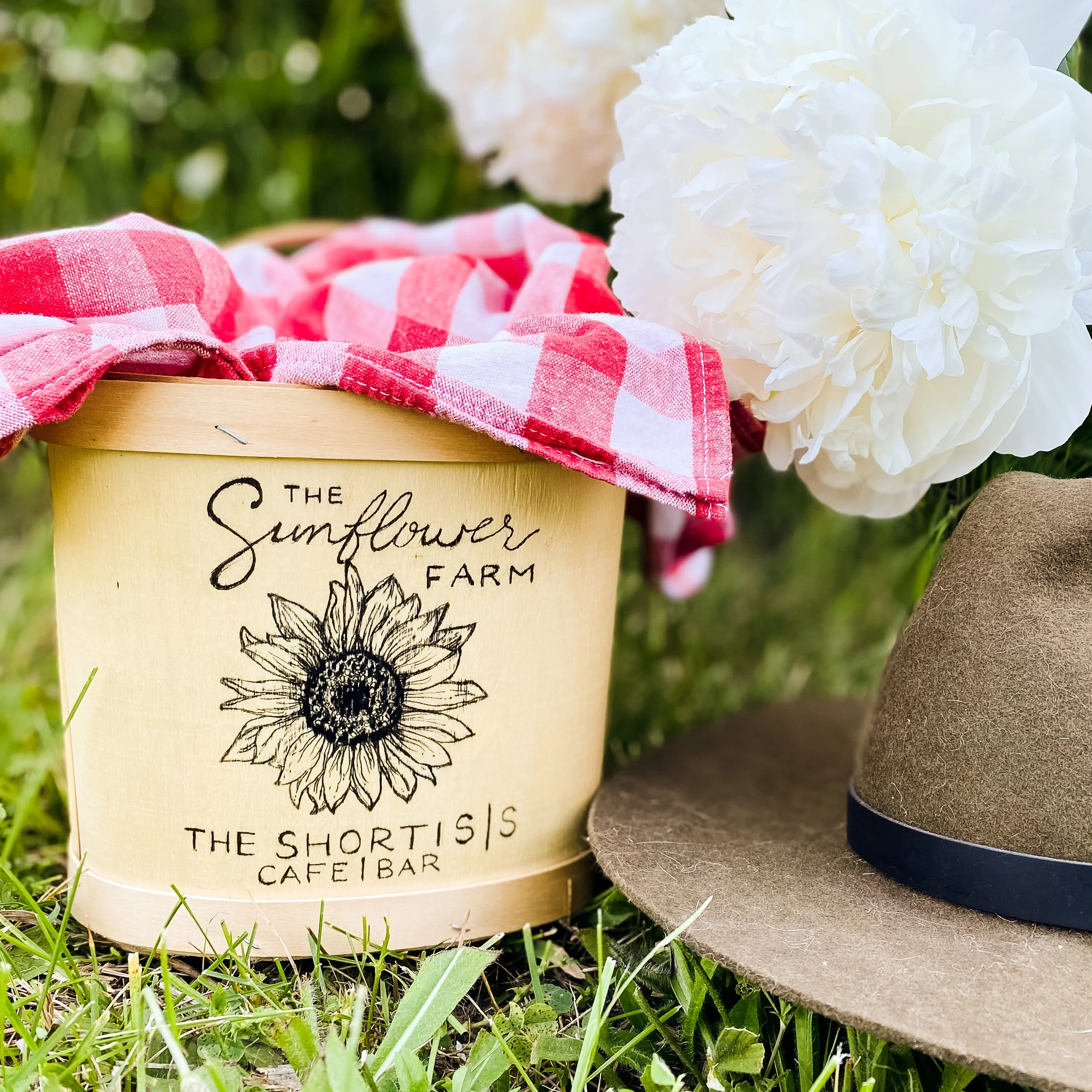 Come enjoy a picnic for two surrounded by thousands of blooming sunflowers! Great for couples or a couple of best friends. Scrumptious picnic curated by The Shortiss Cafe. Optional add-on of locally sourced fruit wine, beer, or cider. Beer brewed by Second Wedge, fruit wine provided by Applewood Farm Winery, cider crafted by Slabtown Cider.